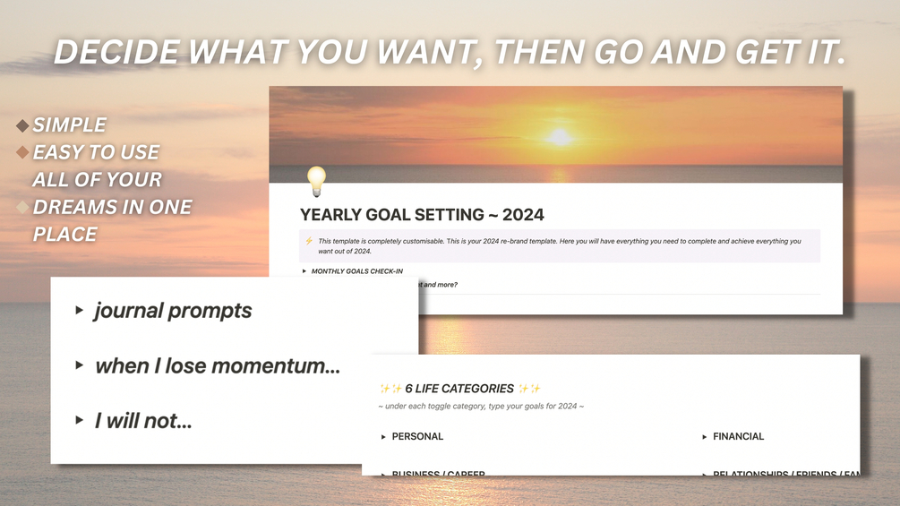 This is a Notion Template which will elevate your goal setting and allow you to not only have but create your best year yet.